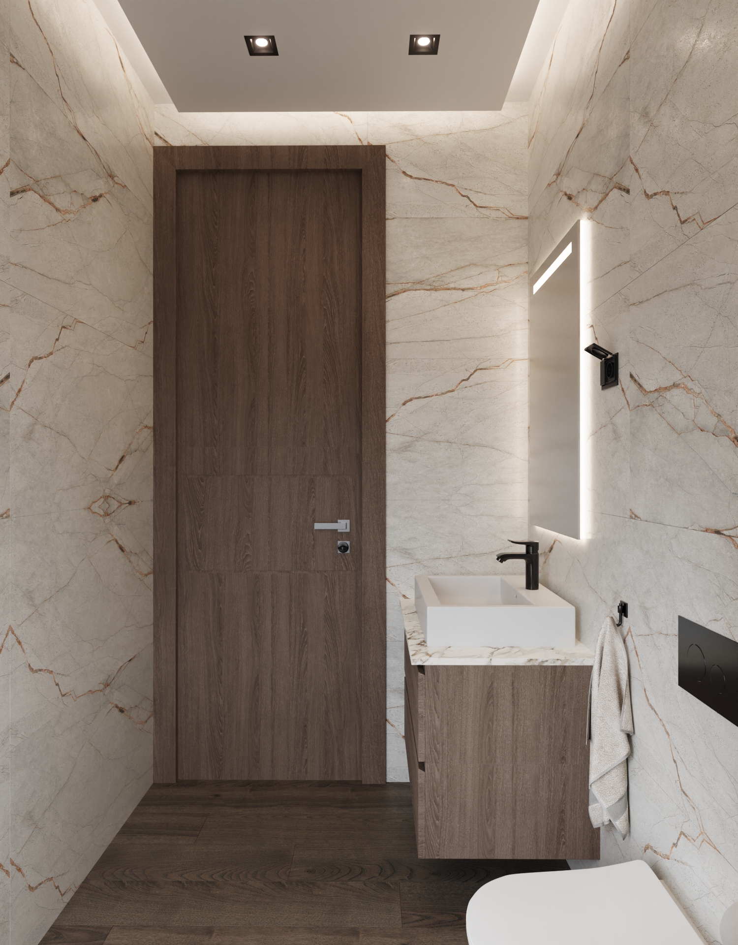 Projekat enterijera porodične kuće za odmor, realizovan je u savremenom duhu uz primenu najkvalitetnijih prirodnih materijala.
